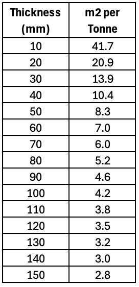 There is however an alternative way to calculate the quantity, which is particularly useful when various layers are required and in different materials. This involves calculating the quantity using what some in the industry will describe as 'covers or superage', which is using the m2 per tonne based on a layer thickness.